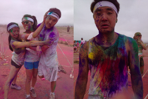 To recap, The Color Run is a 5k run that supports the Big Brothers and Big Sisters Charity. Every 1k, you get splashed with a color and in the end, you are all covered! David tried to dodge every color...of course. But in the end, there's no way to escape it!